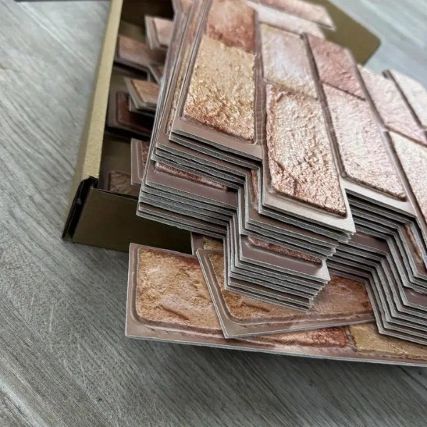 Trójwymiarowy wzór nadaje ścianom naturalną fakturę cegły, tworząc głębię i charakter. Idealny do salonów, sypialni, kuchni, korytarzy i biur.