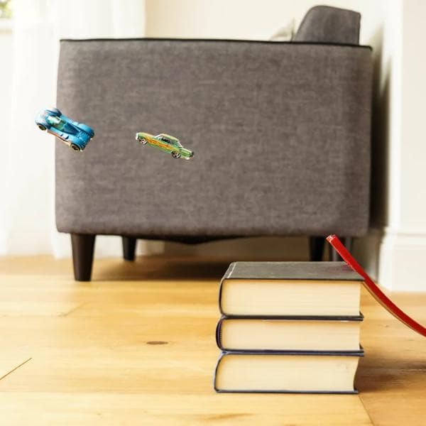 Wykorzystaj przedmioty gospodarstwa domowego, aby stworzyć wyboje, skocznie, tunele i pętle dla dodatkowej ekscytacji.